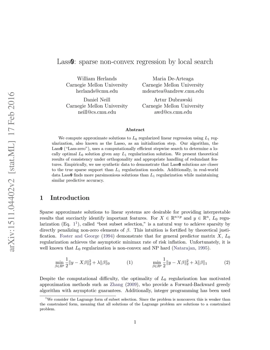 We compute approximate solutions to L0 regularized linear regression using L1 regularization, also known as the Lasso, as an initialization step. Our algorithm, the Lass-0 ("Lass-zero"), uses a computationally efficient stepwise search to determine a locally optimal L0 solution given any L1 regularization solution. We present theoretical results of consistency under orthogonality and appropriate handling of redundant features. Empirically, we use synthetic data to demonstrate that Lass-0 solutions are closer to the true sparse support than L1 regularization models. Additionally, in real-world data Lass-0 finds more parsimonious solutions than L1 regularization while maintaining similar predictive accuracy.