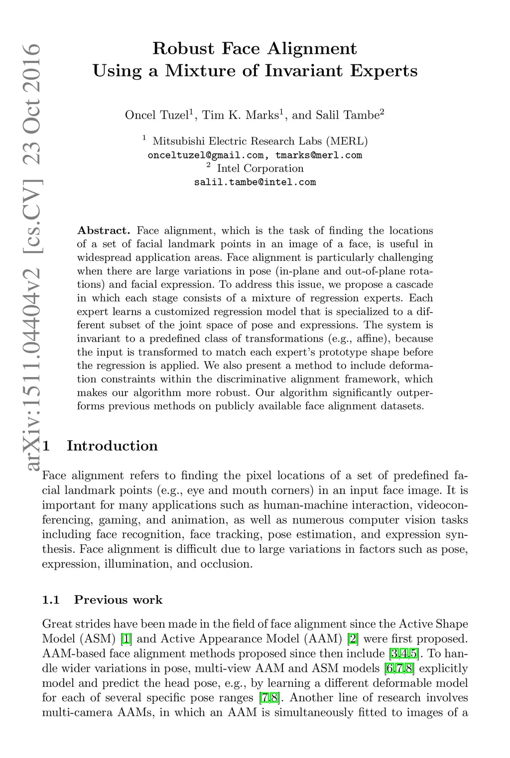 Robust Face Alignment Using a Mixture of Invariant Experts
