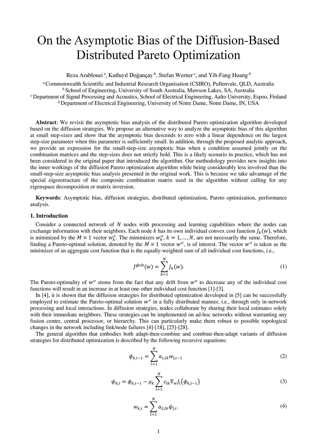 On the Asymptotic Bias of the Diffusion-Based Distributed Pareto
