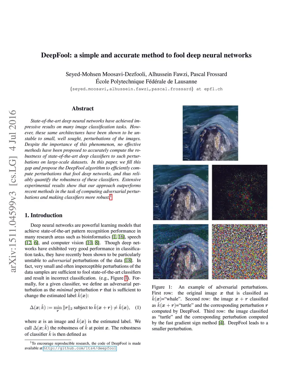 State-of-the-art deep neural networks have achieved impressive results on many image classification tasks. However, these same architectures have been shown to be unstable to small, well sought, perturbations of the images. Despite the importance of this phenomenon, no effective methods have been proposed to accurately compute the robustness of state-of-the-art deep classifiers to such perturbations on large-scale datasets. In this paper, we fill this gap and propose the DeepFool framework to efficiently compute perturbations that fools deep network and thus reliably quantify the robustness of arbitrary classifiers. Extensive experimental results show that our approach outperforms recent methods in the task of computing adversarial perturbations and making classifiers more robust. To encourage reproducible research, the code of DeepFool will be available online.