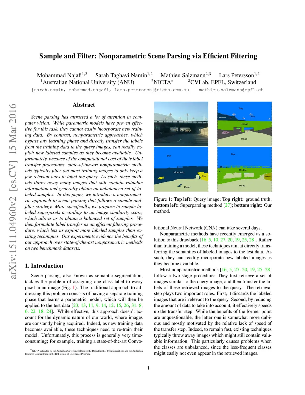 Sample and Filter: Nonparametric Scene Parsing via Efficient Filtering