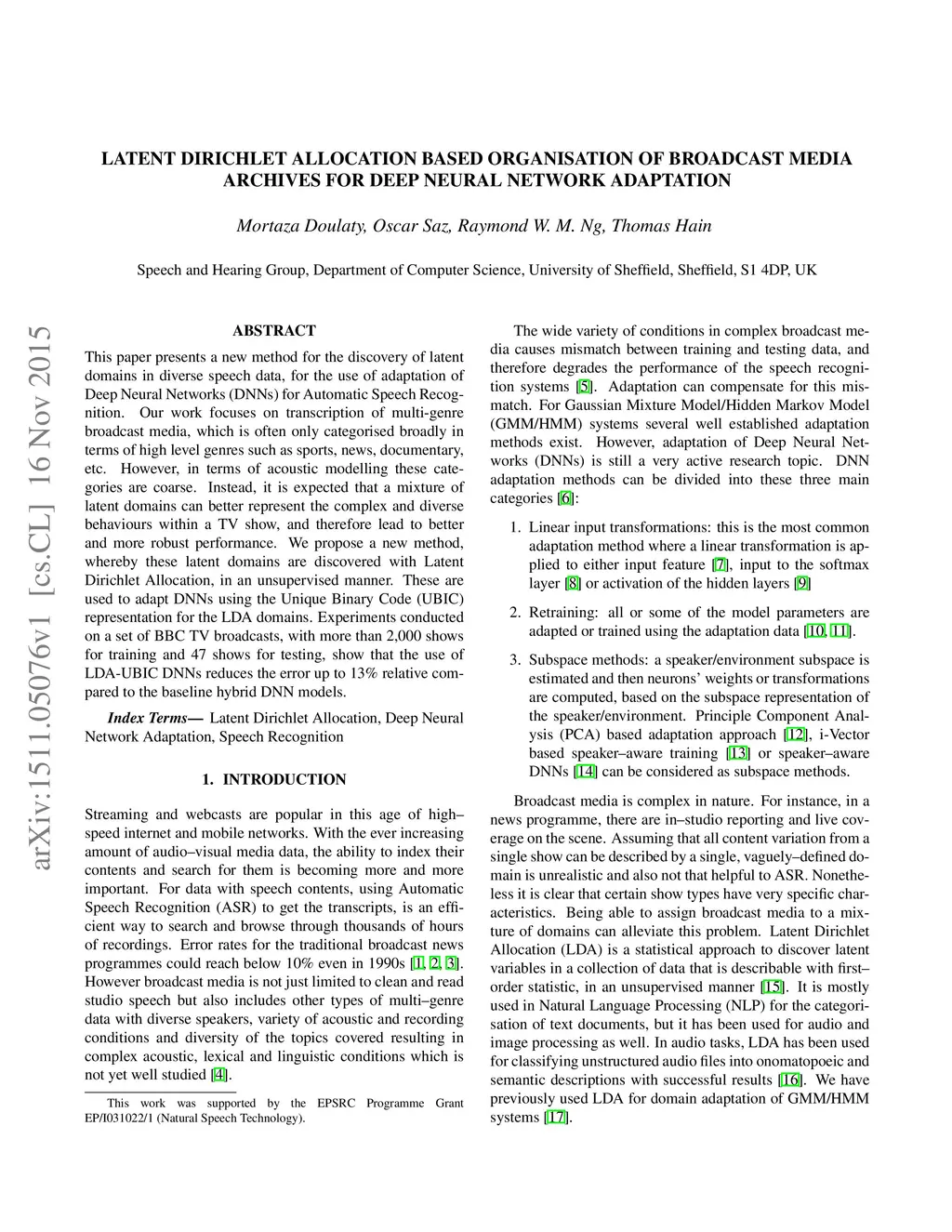 Latent Dirichlet Allocation Based Organisation of Broadcast Media