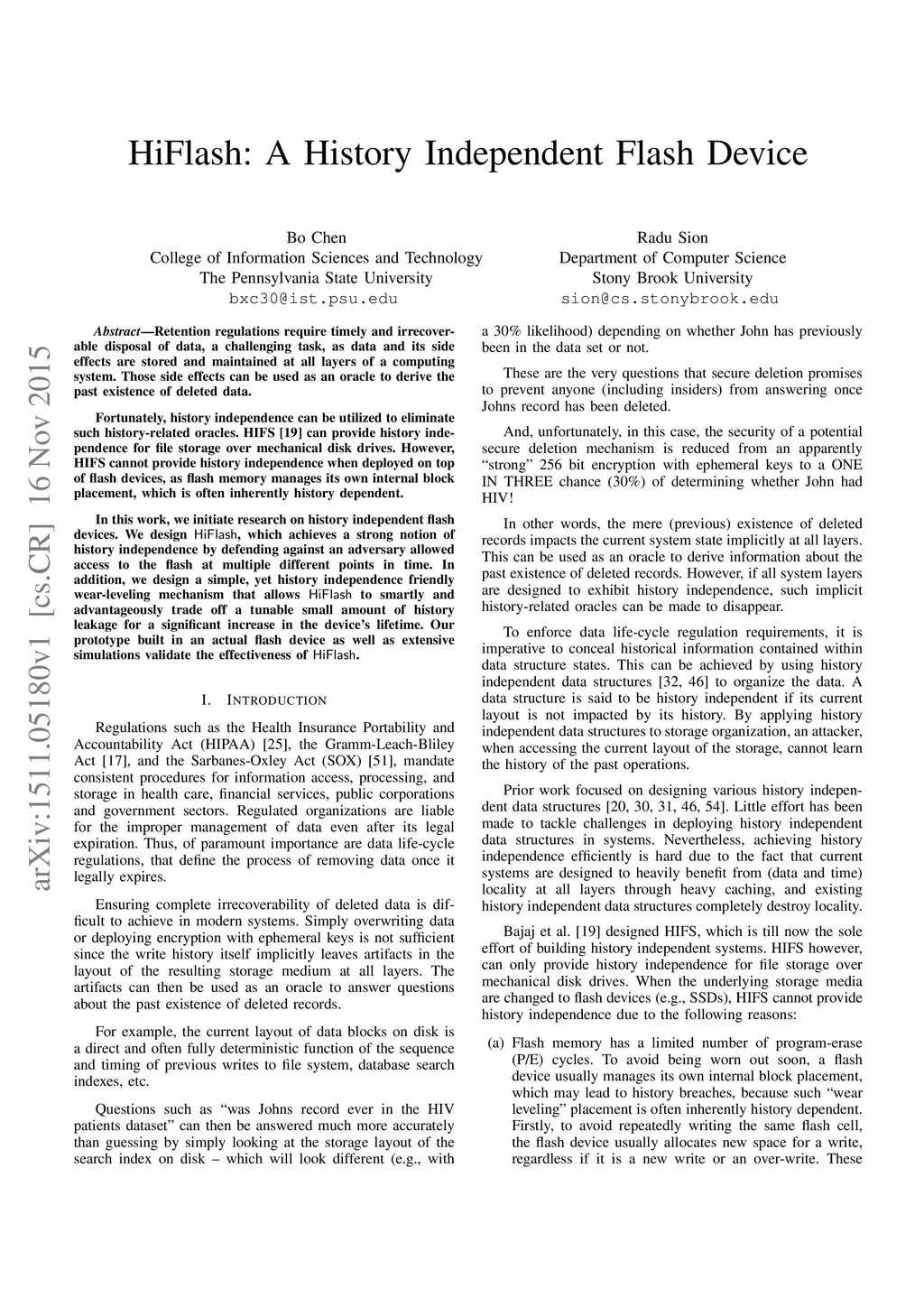 HiFlash: A History Independent Flash Device