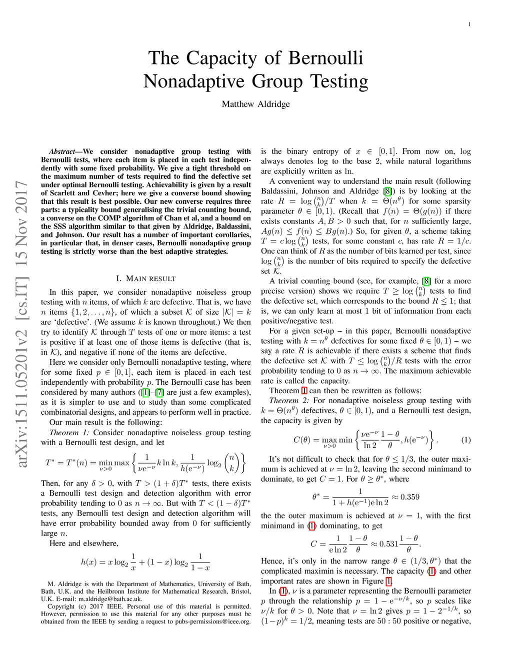 The capacity of Bernoulli nonadaptive group testing