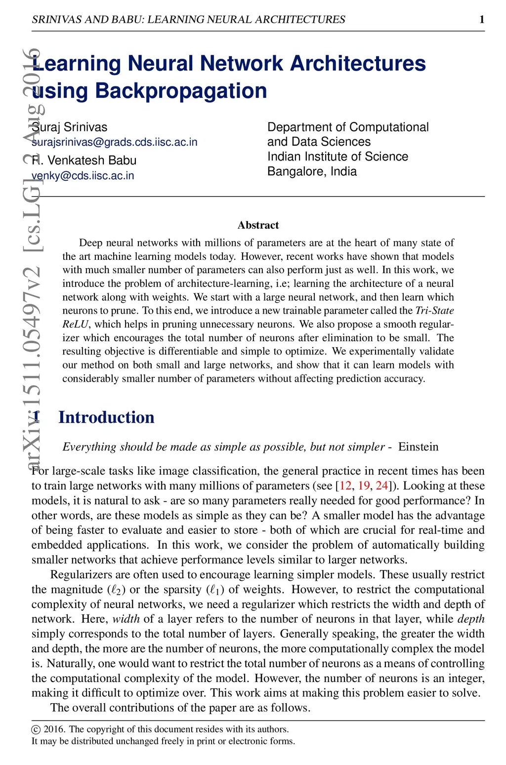 Deep neural networks with millions of parameters are at the heart of many state of the art machine learning models today. However, recent works have shown that models with much smaller number of parameters can also perform just as well. In this work, we introduce the problem of architecture-learning, i.e; learning the architecture of a neural network along with weights. We introduce a new trainable parameter called tri-state ReLU, which helps in eliminating unnecessary neurons. We also propose a smooth regularizer which encourages the total number of neurons after elimination to be small. The resulting objective is differentiable and simple to optimize. We experimentally validate our method on both small and large networks, and show that it can learn models with a considerably small number of parameters without affecting prediction accuracy.