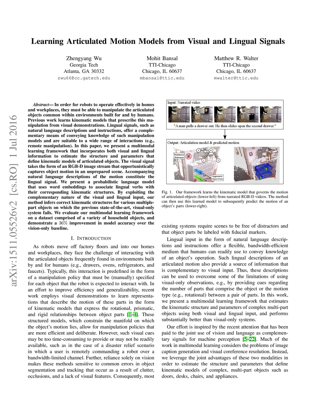 Learning Articulated Motion Models from Visual and Lingual Signals