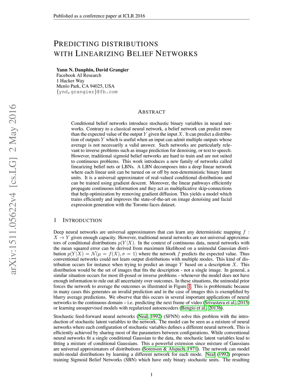 Predicting distributions with Linearizing Belief Networks