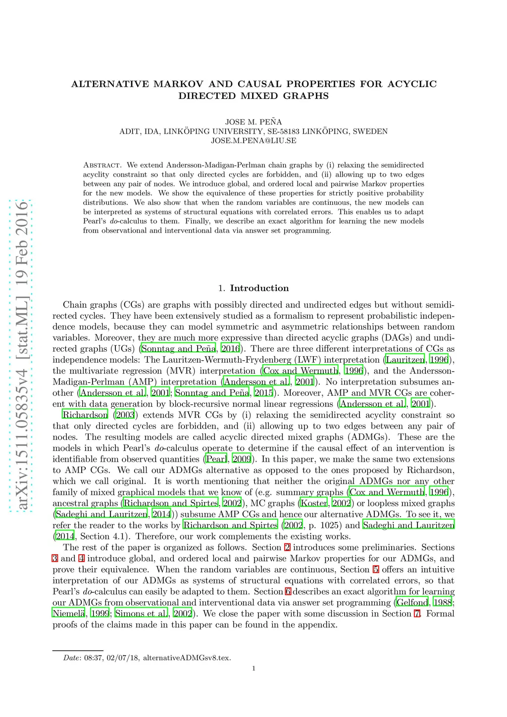 We extend AMP chain graphs by (i) relaxing the semidirected acyclity constraint so that only directed cycles are forbidden, and (ii) allowing up to two edges between any pair of nodes. We introduce global, ordered local and pairwise Markov properties for the new models. We show the equivalence of these properties for strictly positive probability distributions. We also describe an exact algorithm for learning the new models via answer set programming. Finally, we show that when the random variables are continuous, the new models can be interpreted as systems of structural equations with correlated errors. This enables us to adapt Pearl's do-calculus to them.