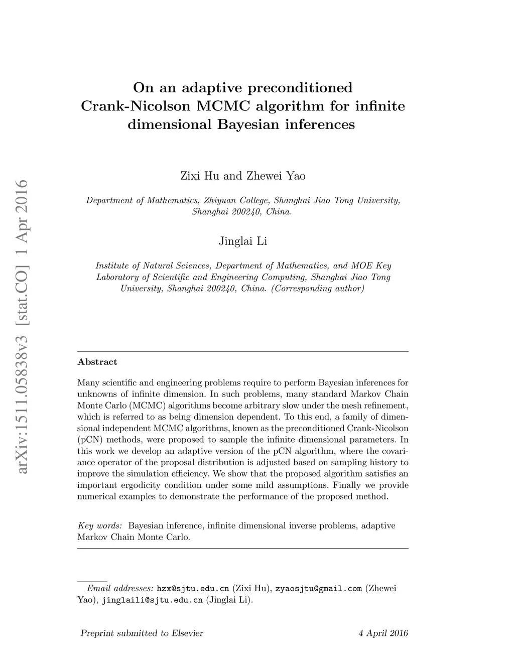 On an adaptive preconditioned Crank-Nicolson algorithm for infinite