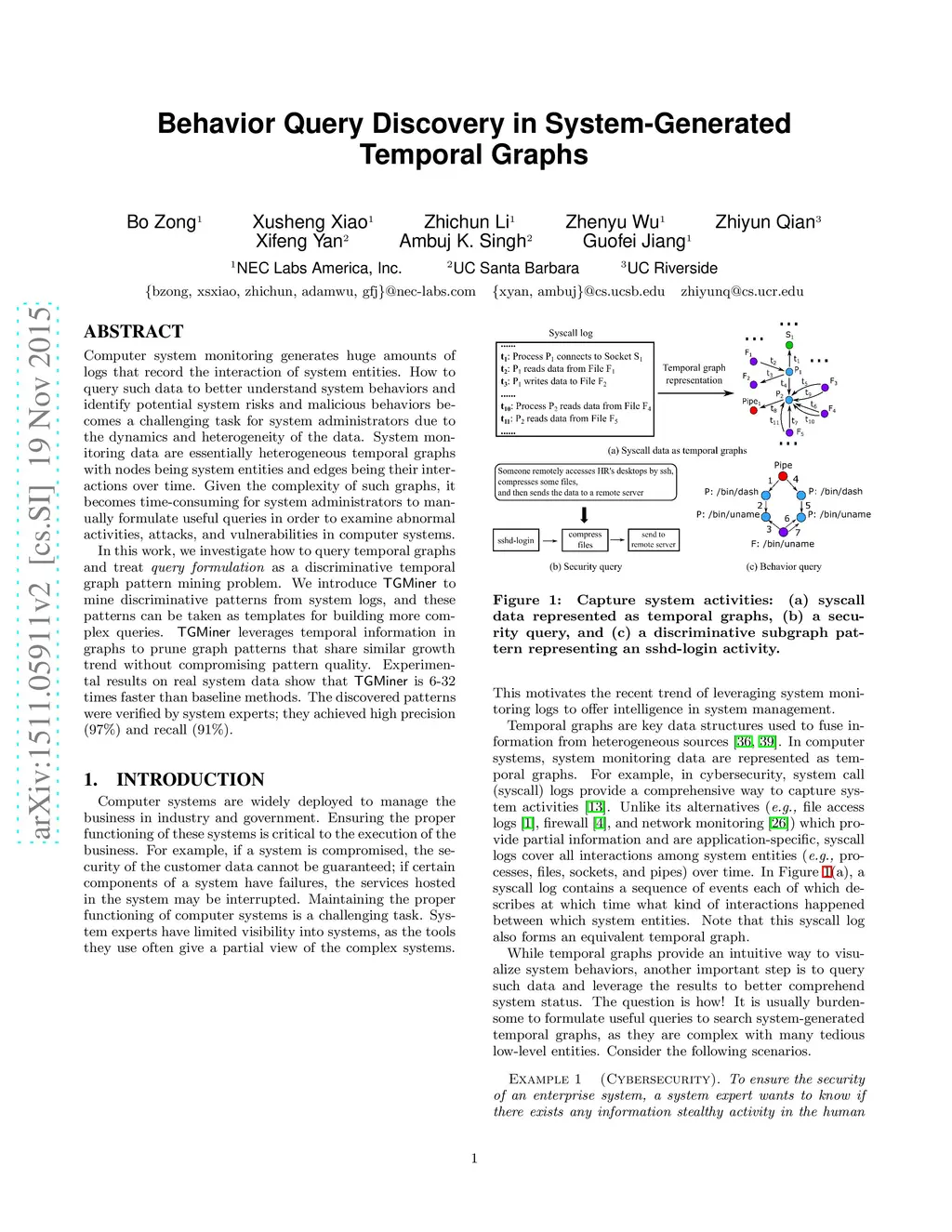 Behavior Query Discovery in System-Generated Temporal Graphs