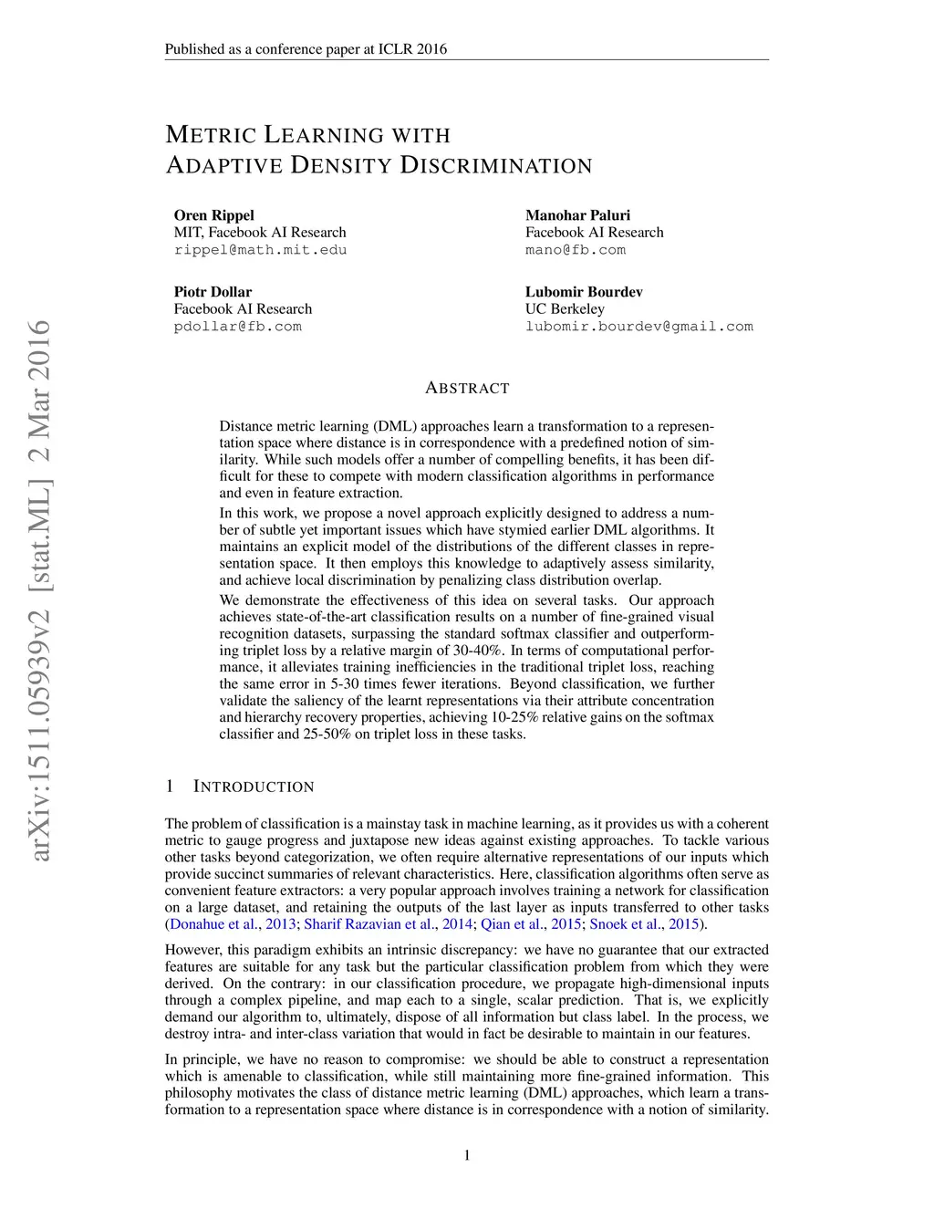 Distance metric learning (DML) approaches learn a transformation to a representation space where distance is in correspondence with a predefined notion of similarity. While such models offer a number of compelling benefits, it has been difficult for these to compete with modern classification algorithms in performance and even in feature extraction. In this work, we propose a novel approach explicitly designed to address a number of subtle yet important issues which have stymied earlier DML algorithms. It maintains an explicit model of the distributions of the different classes in representation space. It then employs this knowledge to adaptively assess similarity, and achieve local discrimination by penalizing class distribution overlap. We demonstrate the effectiveness of this idea on several tasks. Our approach achieves state-of-the-art classification results on a number of fine-grained visual recognition datasets, surpassing the standard softmax classifier and outperforming triplet loss by a relative margin of 30-40%. In terms of computational performance, it alleviates training inefficiencies in the traditional triplet loss, reaching the same error in 5-30 times fewer iterations. Beyond classification, we further validate the saliency of the learnt representations via their attribute concentration and hierarchy recovery properties, achieving 10-25% relative gains on the softmax classifier and 25-50% on triplet loss in these tasks.