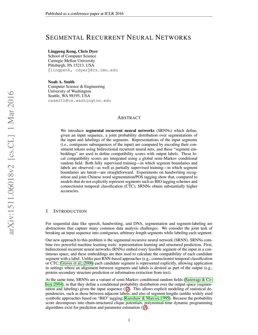 Segmental Recurrent Neural Networks