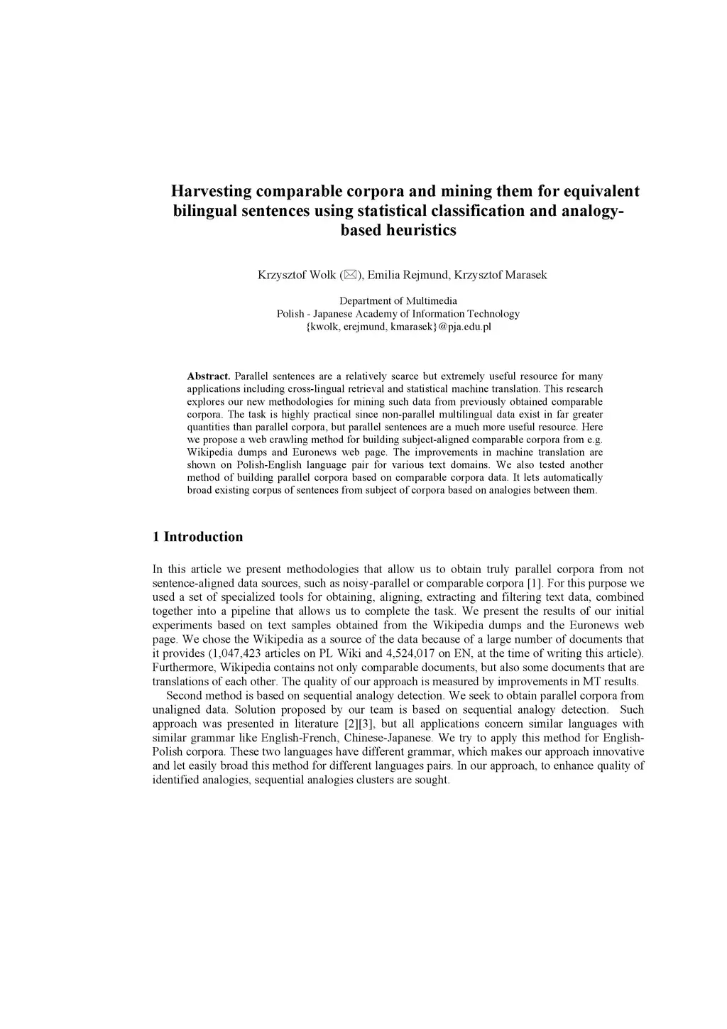 Harvesting comparable corpora and mining them for equivalent bilingual