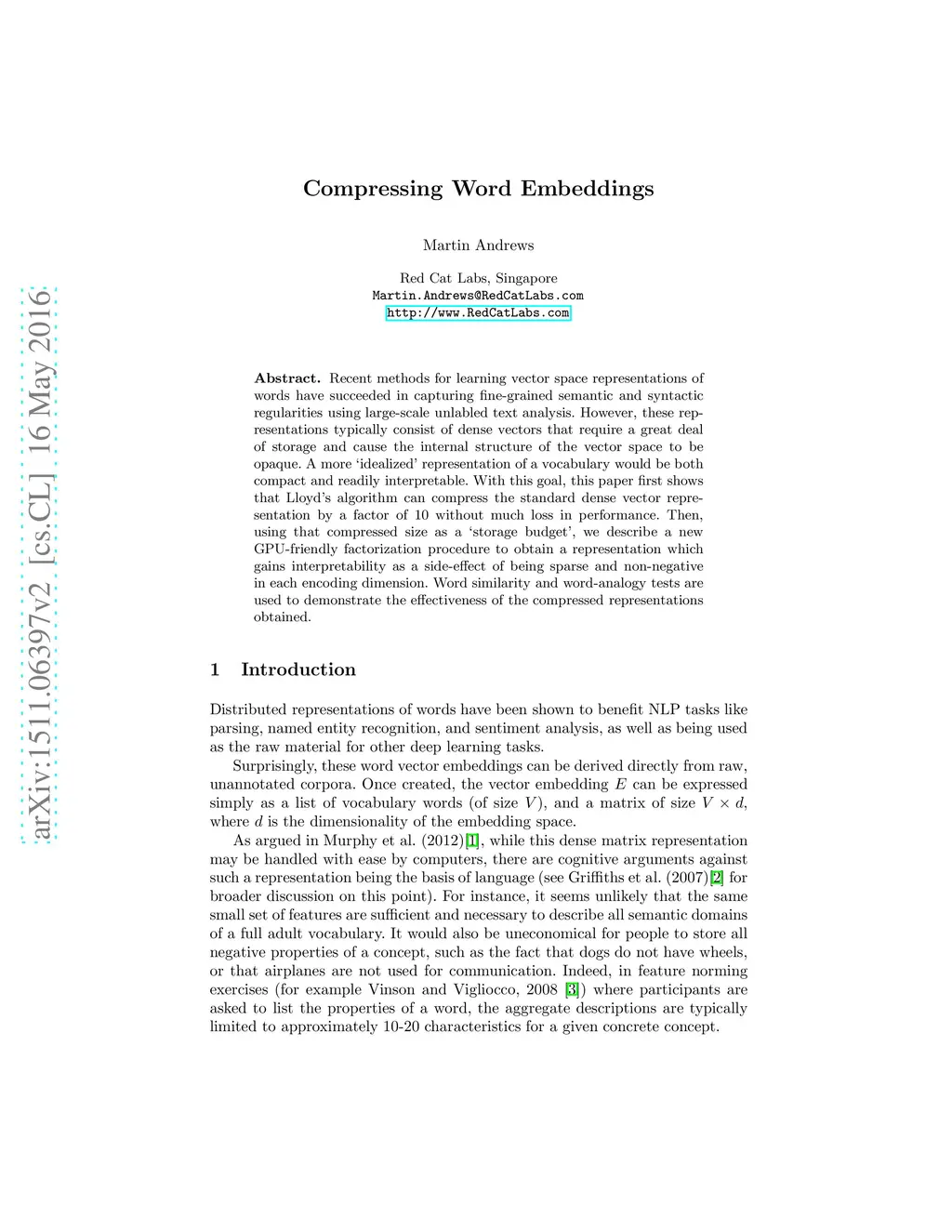 Compressing Word Embeddings