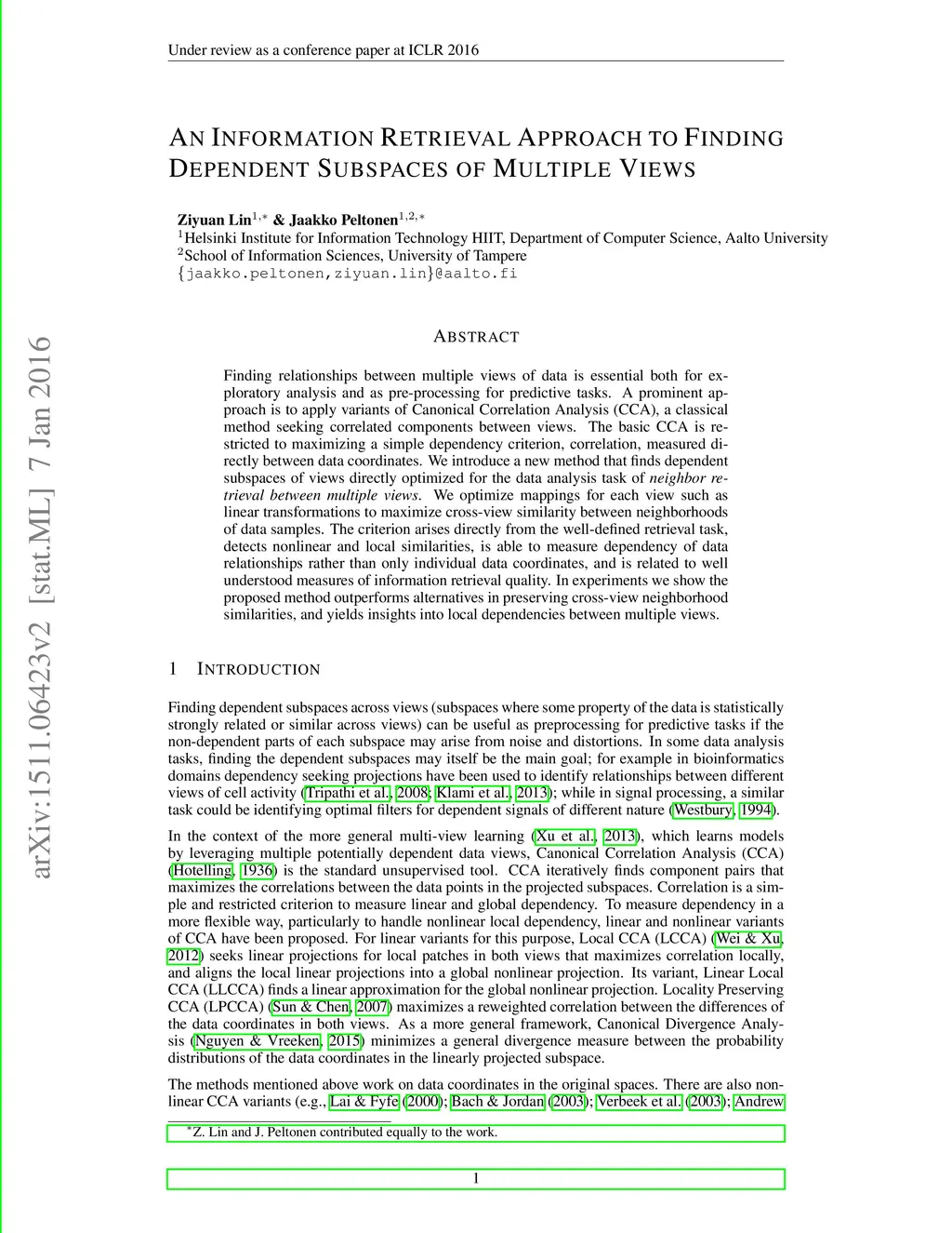 An Information Retrieval Approach to Finding Dependent Subspaces of