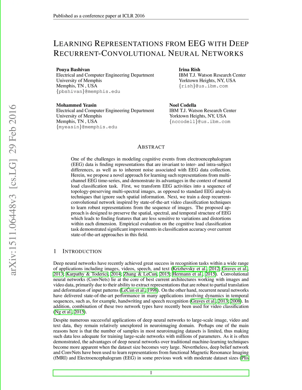 Learning Representations from EEG with Deep Recurrent-Convolutional