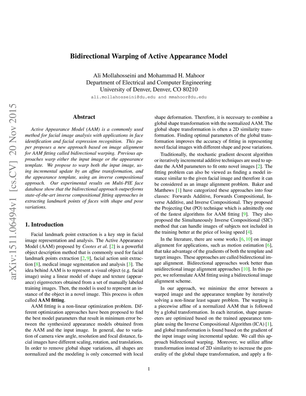 Bidirectional Warping of Active Appearance Model