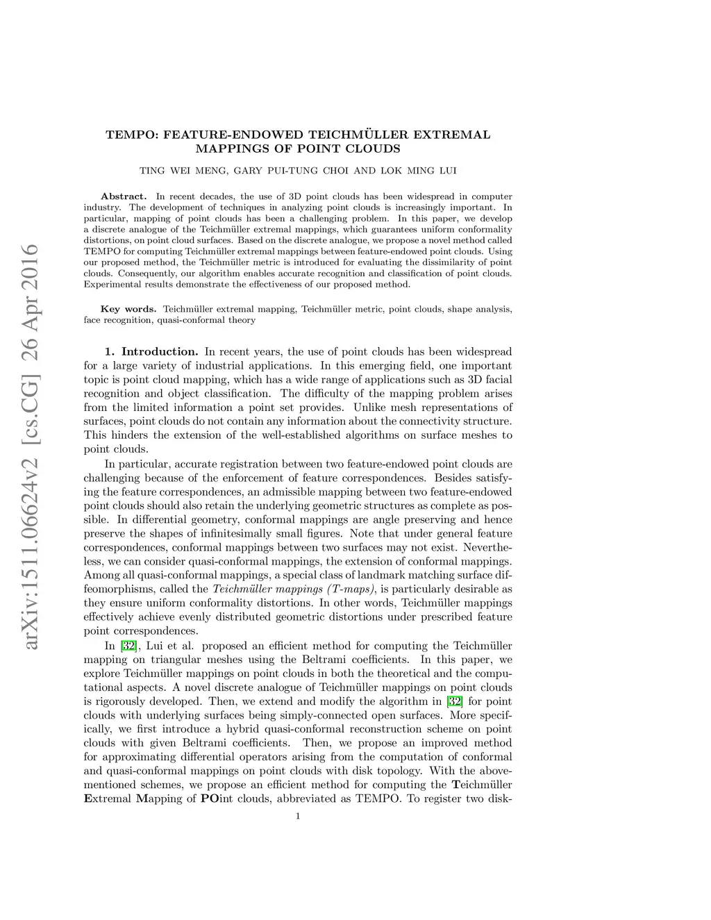 TEMPO: Feature-Endowed Teichmüller Extremal Mappings of Point Clouds