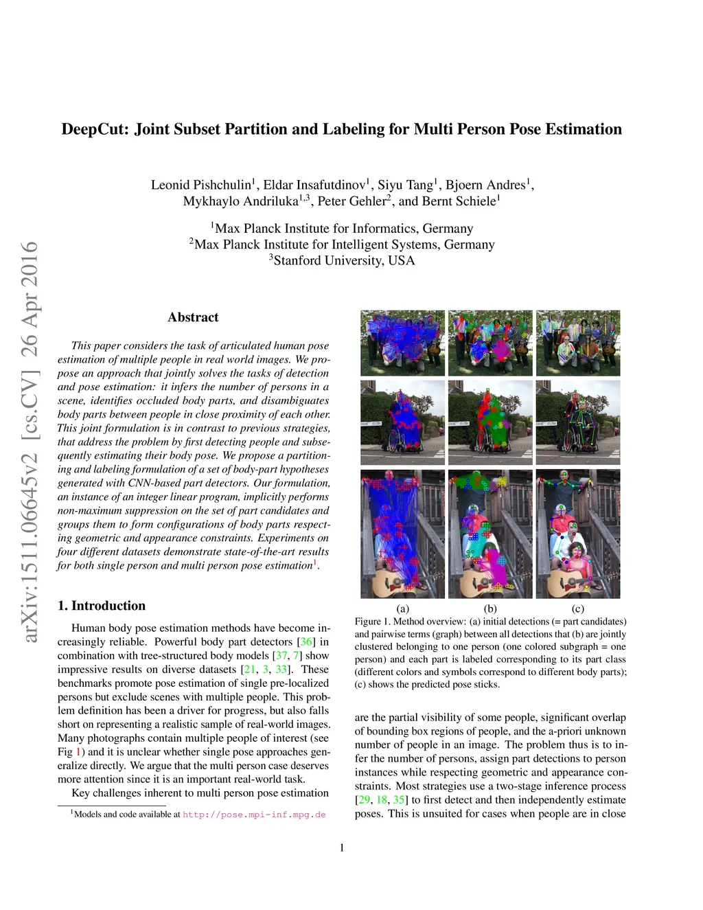 DeepCut: Joint Subset Partition and Labeling for Multi Person Pose