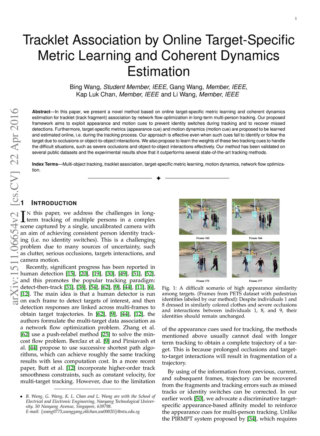 In this paper, we present a novel method based on online target-specific metric learning and coherent dynamics estimation for tracklet (track fragment) association by network flow optimization in long-term multi-person tracking. Our proposed framework aims to exploit appearance and motion cues to prevent identity switches during tracking and to recover missed detections. Furthermore, target-specific metrics (appearance cue) and motion dynamics (motion cue) are proposed to be learned and estimated online, i.e. during the tracking process. Our approach is effective even when such cues fail to identify or follow the target due to occlusions or object-to-object interactions. We also propose to learn the weights of these two tracking cues to handle the difficult situations, such as severe occlusions and object-to-object interactions effectively. Our method has been validated on several public datasets and the experimental results show that it outperforms several state-of-the-art tracking methods.