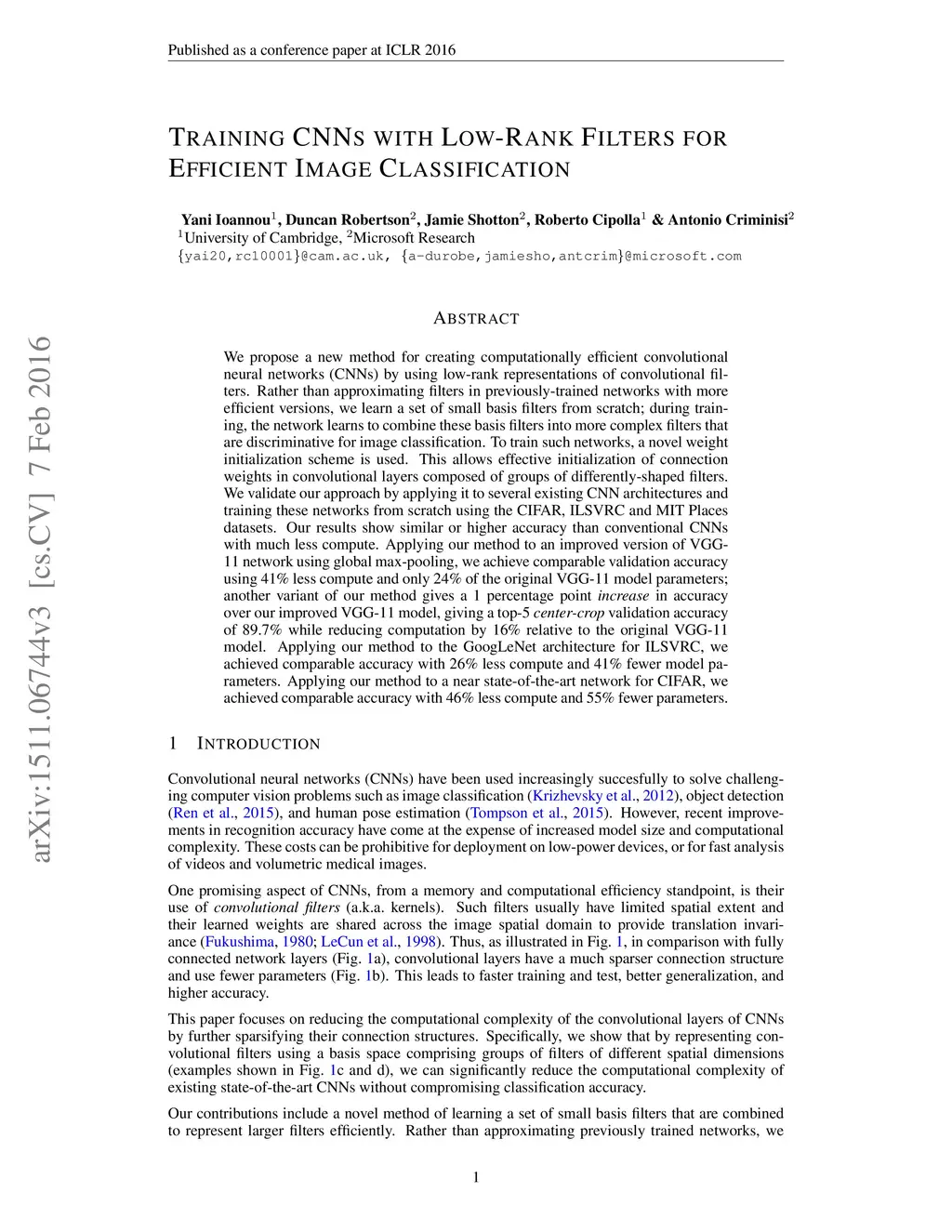 Training CNNs with Low-Rank Filters for Efficient Image Classification