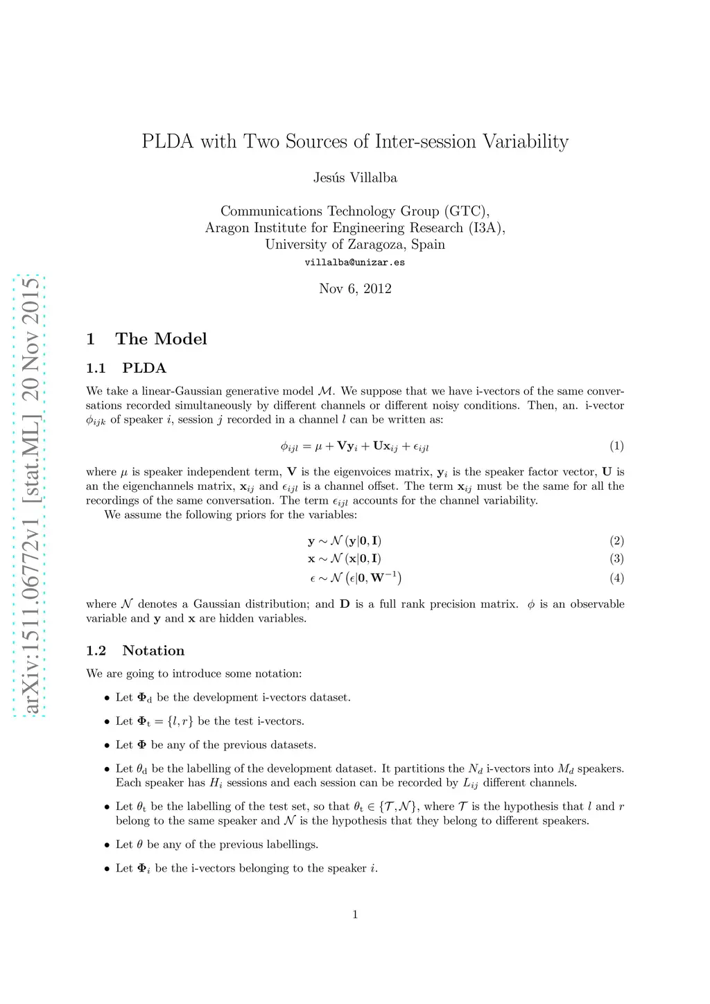 In some speaker recognition scenarios we find conversations recorded simultaneously over multiple channels. That is the case of the interviews in the NIST SRE dataset. To take advantage of that, we propose a modification of the PLDA model that considers two different inter-session variability terms. The first term is tied between all the recordings belonging to the same conversation whereas the second is not. Thus, the former mainly intends to capture the variability due to the phonetic content of the conversation while the latter tries to capture the channel variability. In this document, we derive the equations for this model. This model was applied in the paper "Handling Recordings Acquired Simultaneously over Multiple Channels with PLDA" published at Interspeech 2013.
