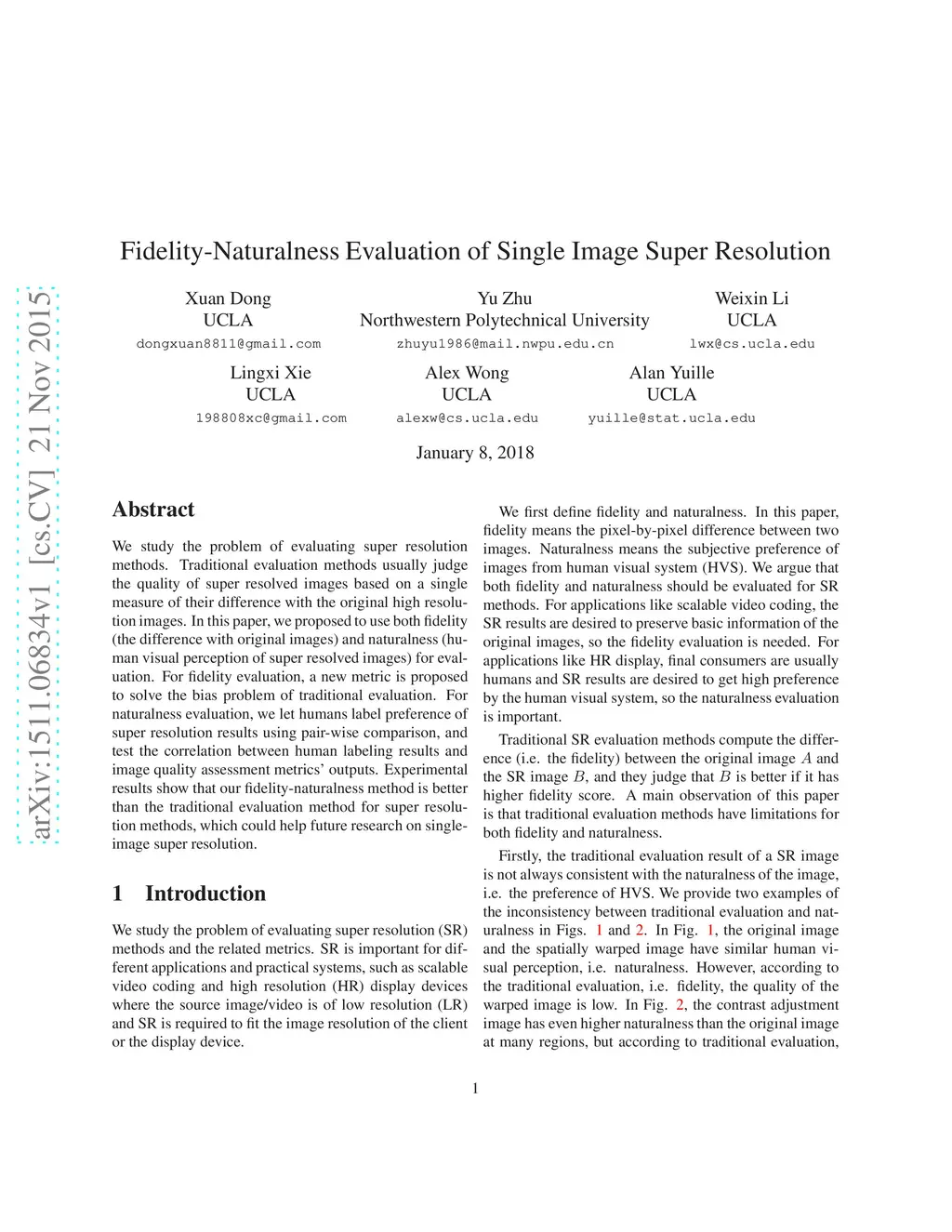 Fidelity-Naturalness Evaluation of Single Image Super Resolution