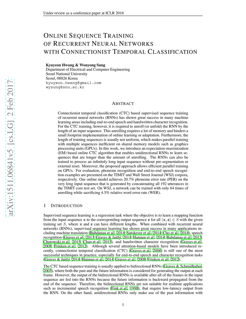 Online Sequence Training of Recurrent Neural Networks with Connectionist