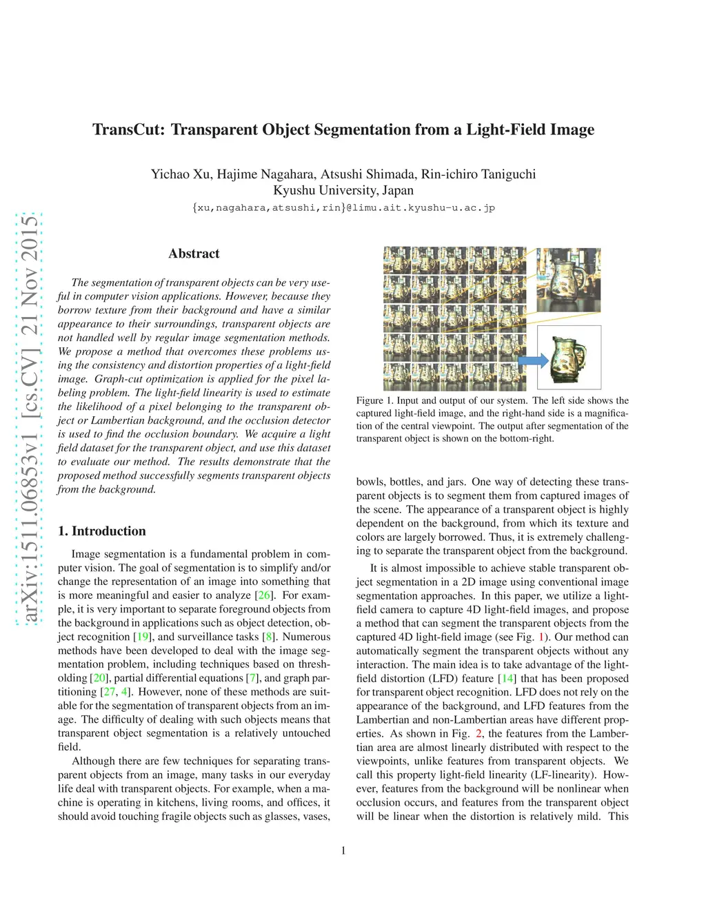 TransCut: Transparent Object Segmentation from a Light-Field Image
