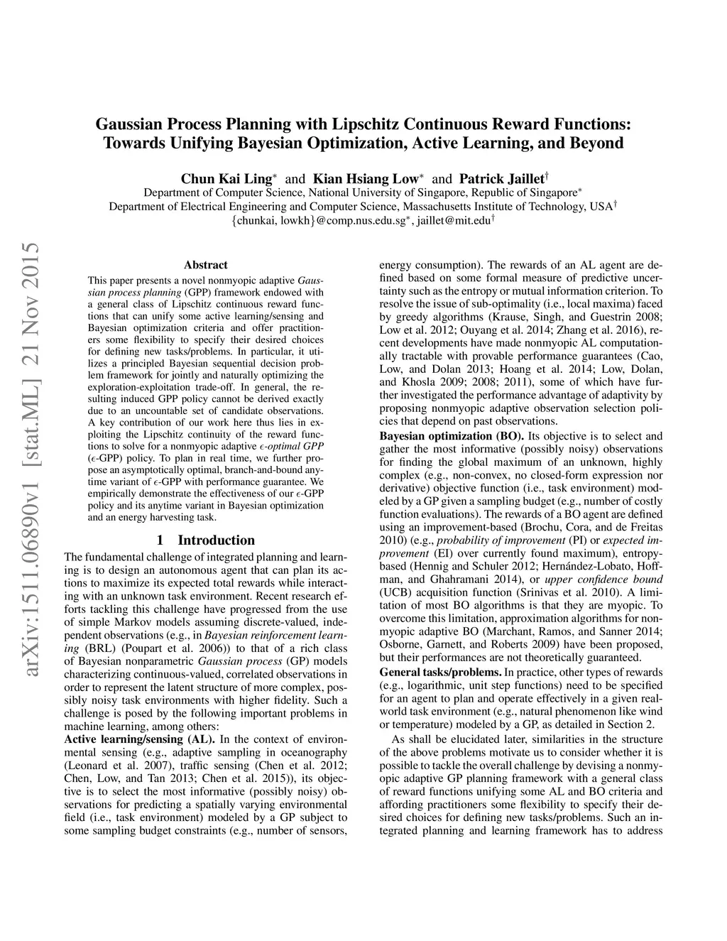 Gaussian Process Planning with Lipschitz Continuous Reward Functions: