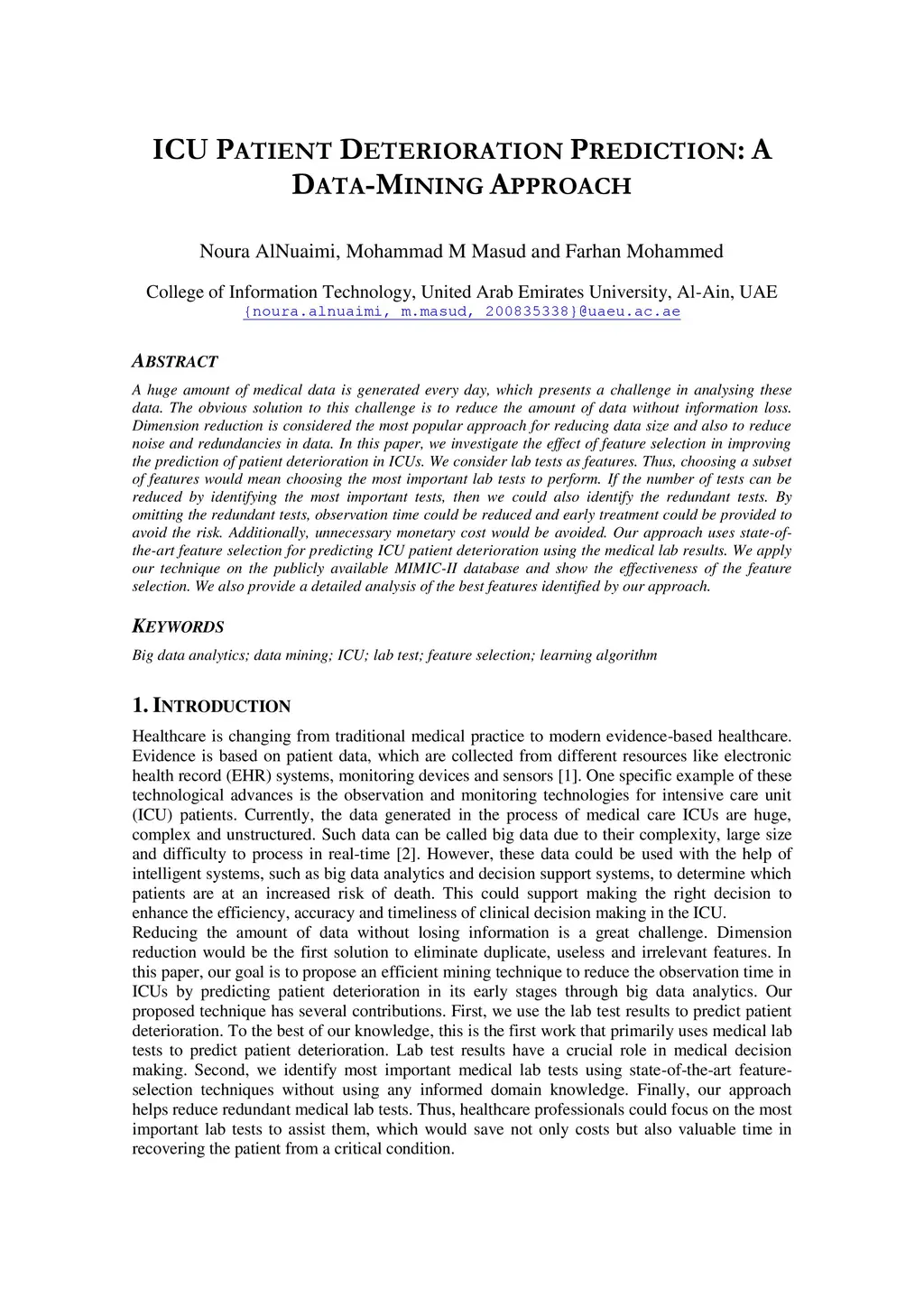 ICU Patient Deterioration prediction: a Data-Mining Approach