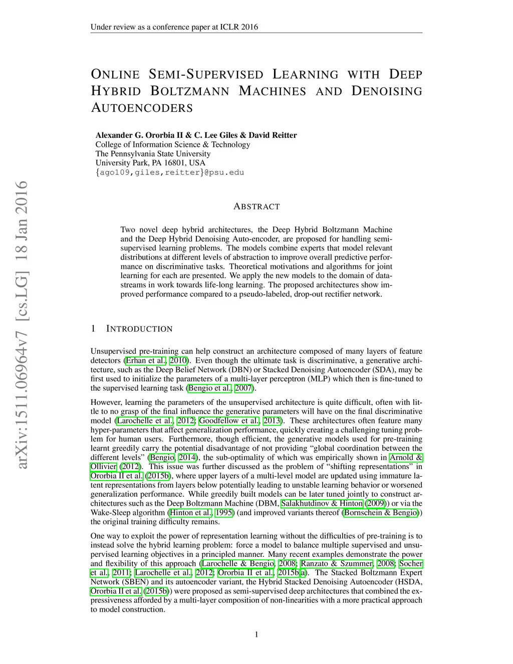 Online Semi-Supervised Learning with Deep Hybrid Boltzmann Machines and Denoising Autoencoders