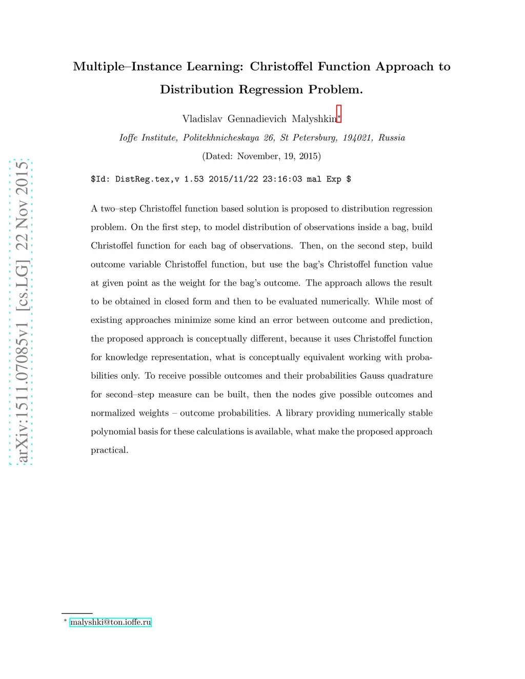 Multiple--Instance Learning: Christoffel Function Approach to