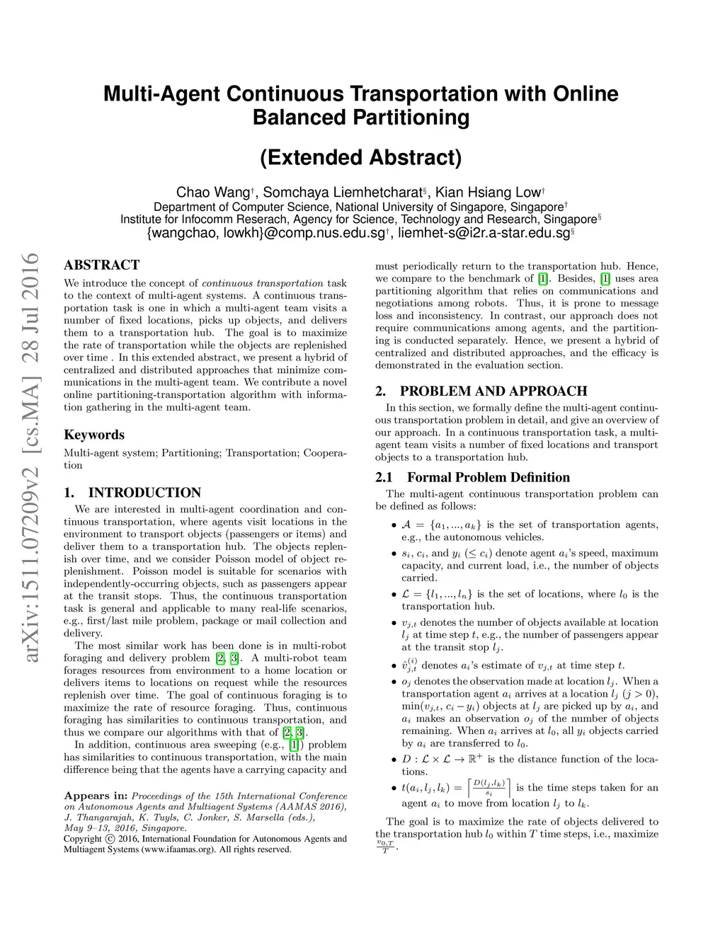 We introduce the concept of continuous transportation task to the context of multi-agent systems. A continuous transportation task is one in which a multi-agent team visits a number of fixed locations, picks up objects, and delivers them to a final destination. The goal is to maximize the rate of transportation while the objects are replenished over time. Examples of problems that need continuous transportation are foraging, area sweeping, and first/last mile problem. Previous approaches typically neglect the interference and are highly dependent on communications among agents. Some also incorporate an additional reconnaissance agent to gather information. In this paper, we present a hybrid of centralized and distributed approaches that minimize the interference and communications in the multi-agent team without the need for a reconnaissance agent. We contribute two partitioning-transportation algorithms inspired by existing algorithms, and contribute one novel online partitioning-transportation algorithm with information gathering in the multi-agent team. Our algorithms have been implemented and tested extensively in the simulation. The results presented in this paper demonstrate the effectiveness of our algorithms that outperform the existing algorithms, even without any communications between the agents and without the presence of a reconnaissance agent.