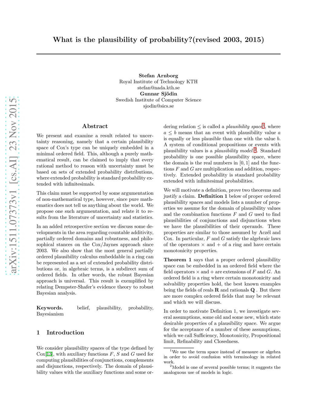 We present and examine a result related to uncertainty reasoning, namely that a certain plausibility space of Cox's type can be uniquely embedded in a minimal ordered field. This, although a purely mathematical result, can be claimed to imply that every rational method to reason with uncertainty must be based on sets of extended probability distributions, where extended probability is standard probability extended with infinitesimals. This claim must be supported by some argumentation of non-mathematical type, however, since pure mathematics does not tell us anything about the world. We propose one such argumentation, and relate it to results from the literature of uncertainty and statistics. In an added retrospective section we discuss some developments in the area regarding countable additivity, partially ordered domains and robustness, and philosophical stances on the Cox/Jaynes approach since 2003. We also show that the most general partially ordered plausibility calculus embeddable in a ring can be represented as a set of extended probability distributions or, in algebraic terms, is a subdirect sum of ordered fields. In other words, the robust Bayesian approach is universal. This result is exemplified by relating Dempster-Shafer's evidence theory to robust Bayesian analysis.