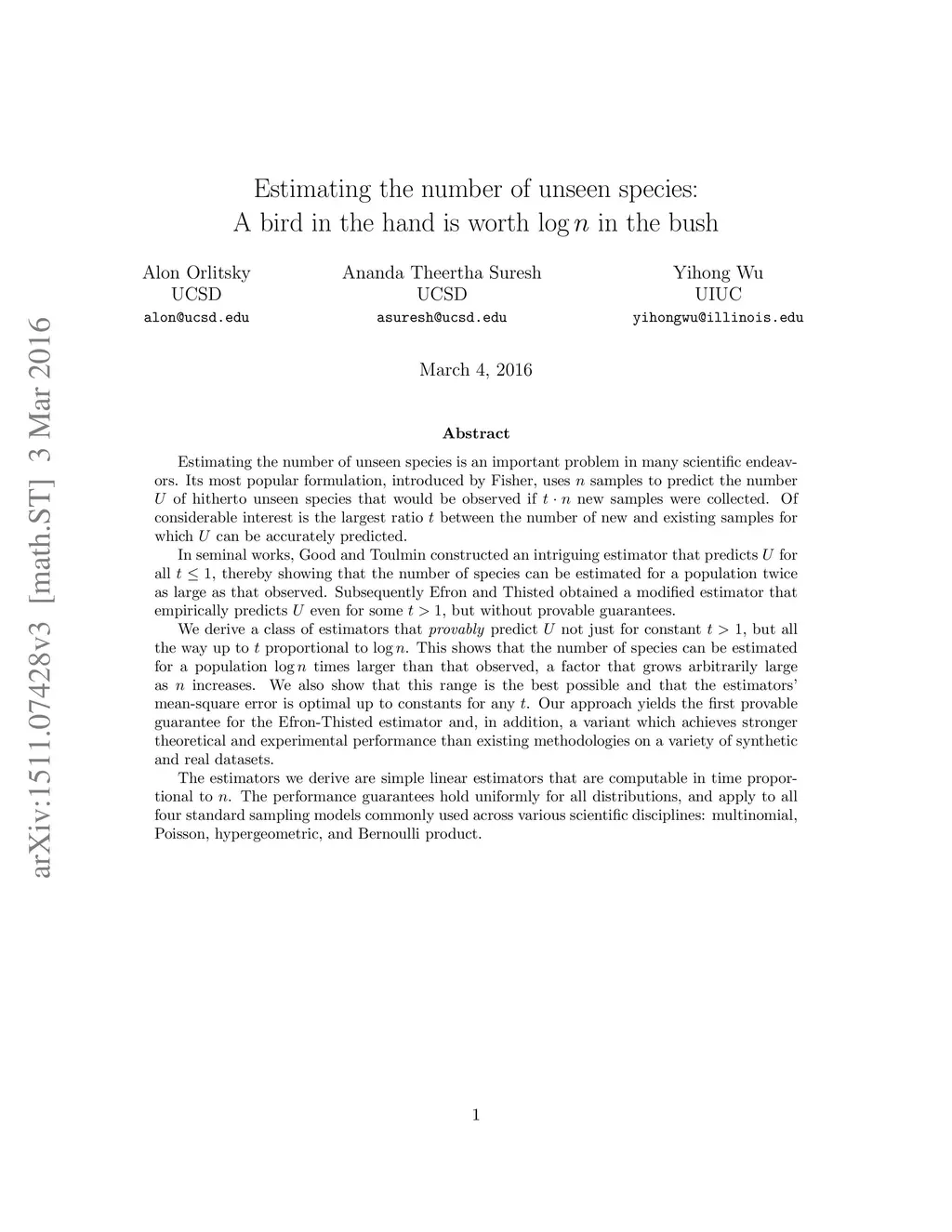 Estimating the number of unseen species: A bird in the hand is worth
