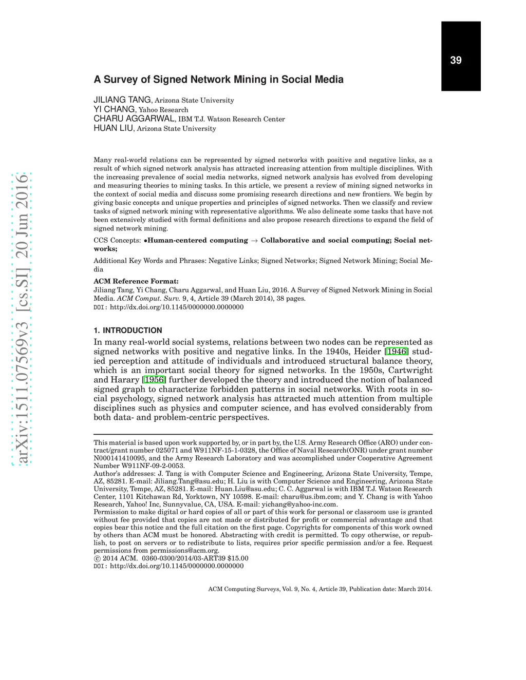 A Survey of Signed Network Mining in Social Media