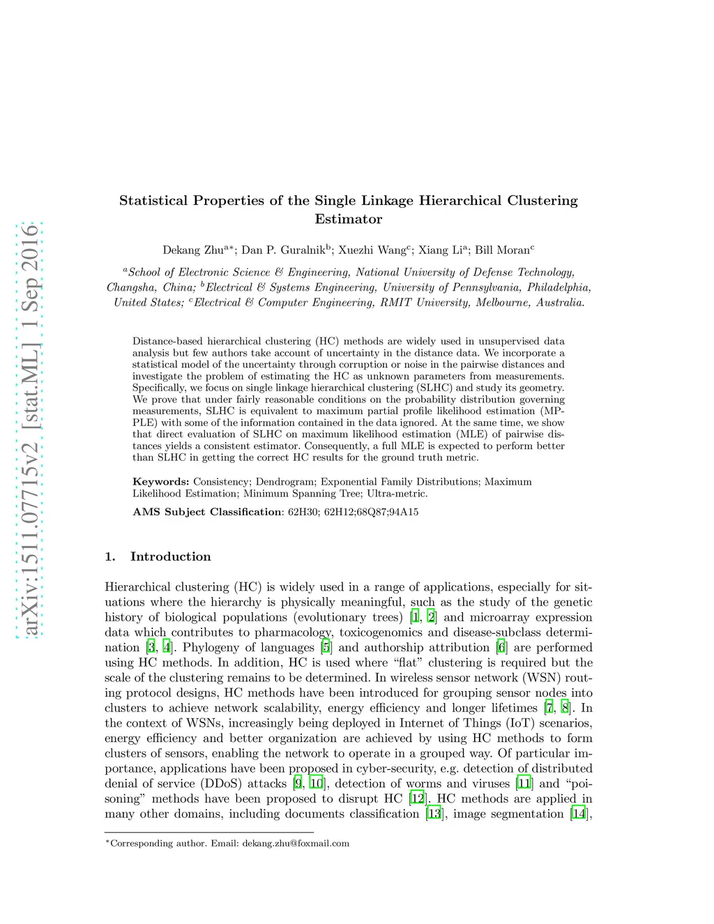 Distance-based hierarchical clustering (HC) methods are widely used in unsupervised data analysis but few authors take account of uncertainty in the distance data. We incorporate a statistical model of the uncertainty through corruption or noise in the pairwise distances and investigate the problem of estimating the HC as unknown parameters from measurements. Specifically, we focus on single linkage hierarchical clustering (SLHC) and study its geometry. We prove that under fairly reasonable conditions on the probability distribution governing measurements, SLHC is equivalent to maximum partial profile likelihood estimation (MPPLE) with some of the information contained in the data ignored. At the same time, we show that direct evaluation of SLHC on maximum likelihood estimation (MLE) of pairwise distances yields a consistent estimator. Consequently, a full MLE is expected to perform better than SLHC in getting the correct HC results for the ground truth metric.