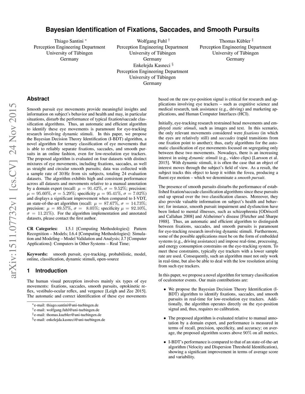 Bayesian Identification of Fixations, Saccades, and Smooth Pursuits