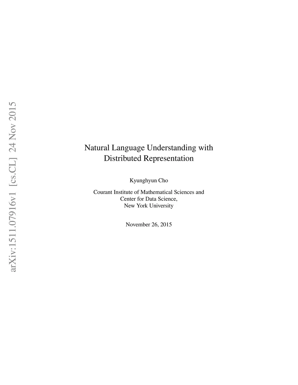 Natural Language Understanding with Distributed Representation