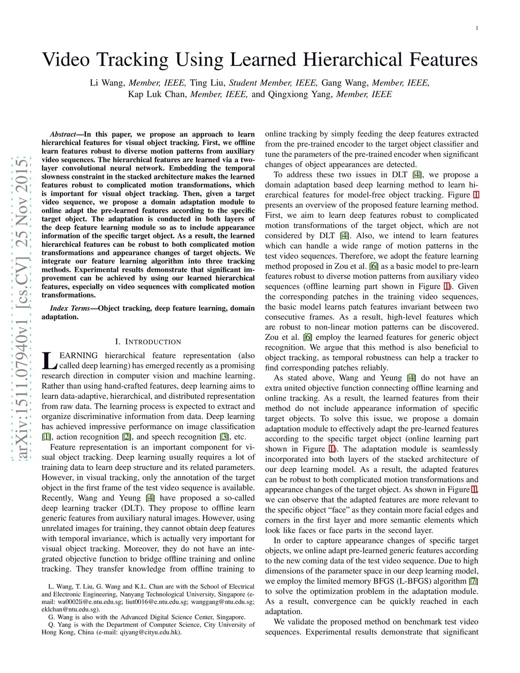 Video Tracking Using Learned Hierarchical Features