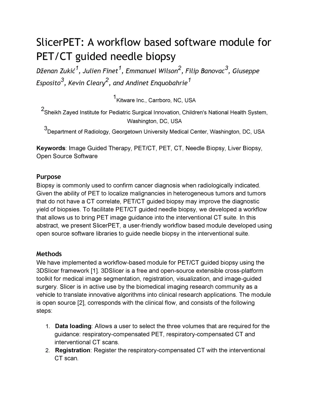 SlicerPET: A workflow based software module for PET/CT guided needle