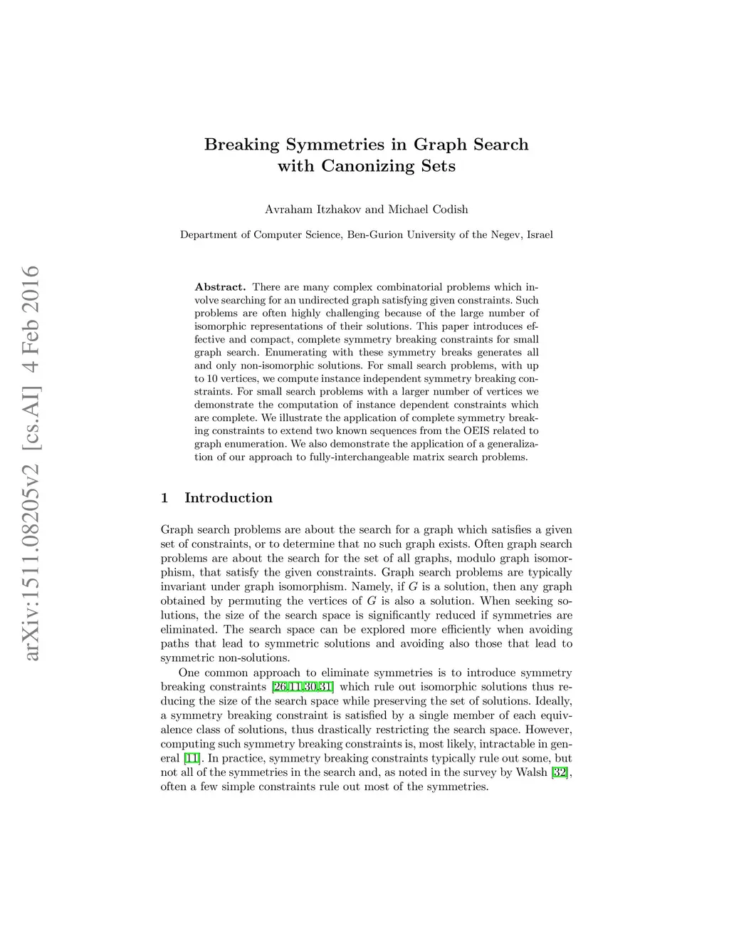 Breaking Symmetries in Graph Search with Canonizing Sets