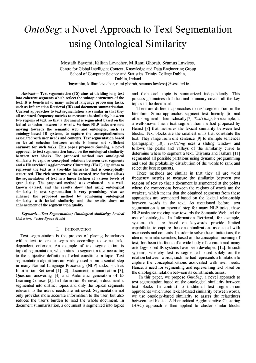 OntoSeg: a Novel Approach to Text Segmentation using Ontological