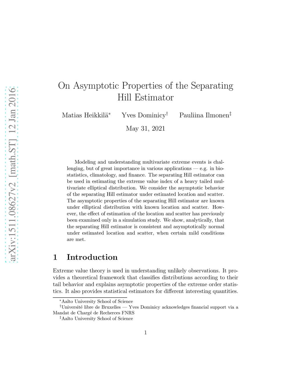 On Asymptotic Properties of the Separating Hill Estimator