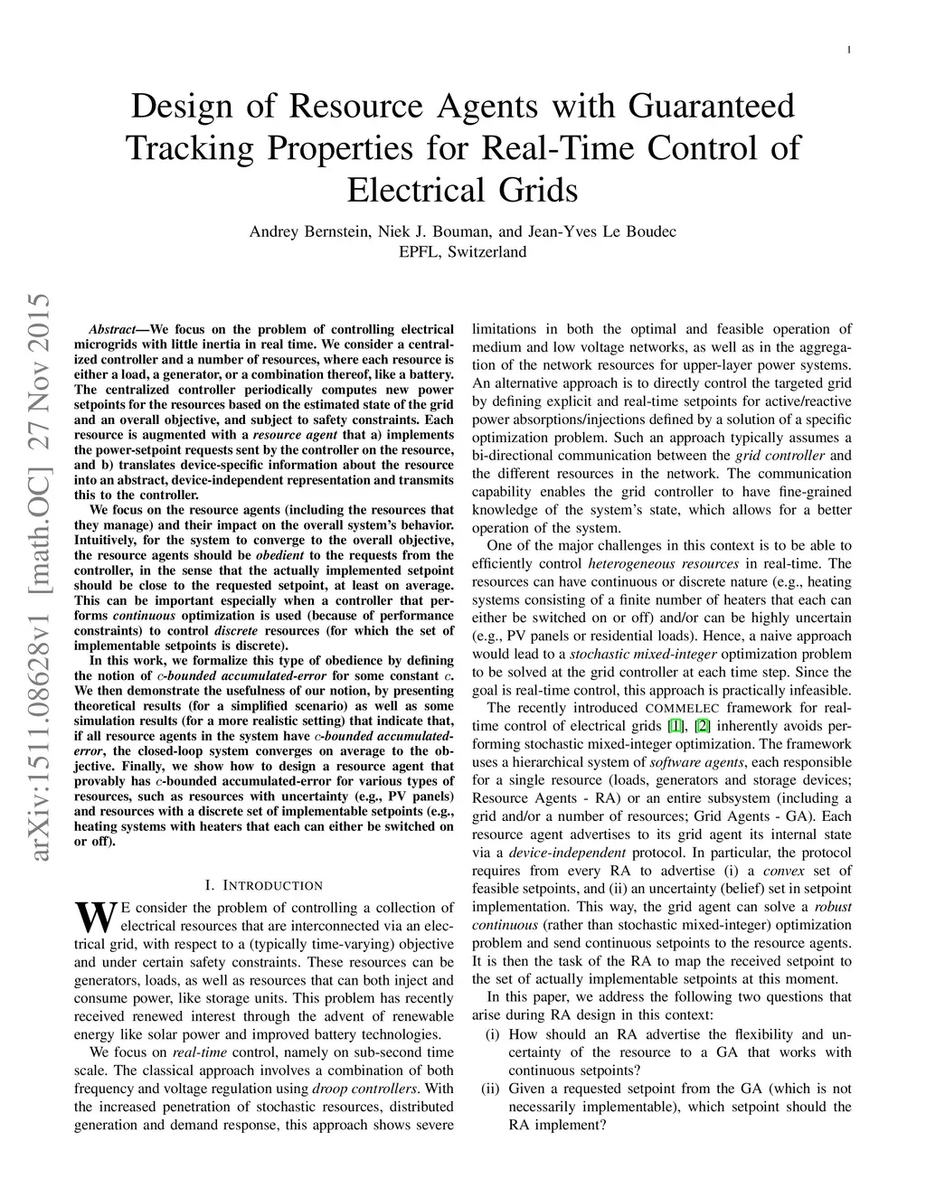 We target the problem of controlling electrical microgrids with little inertia in real time. We consider a central controller and a number of resources, where each resource is either a load, a generator, or a combination thereof, like a battery. The controller periodically computes power setpoints for the resources based on the estimated state of the grid and an overall objective, and subject to safety constraints. Each resource is augmented with a resource agent that a) implements the setpoint requests sent by the controller on the resource, and b) translates device-specific information about the resource into a device-independent representation and transmits this to the controller. We focus on the resource agents and their impact on the overall system's behavior. Intuitively, for the system to converge to the objective, the resource agents should be obedient to the requests from the controller, in the sense that the actually implemented setpoint should be close to the requested setpoint, at least on average. This can be important especially when a controller that performs continuous optimization is used (for the sake of performance) to control discrete resources (which have a discrete set of implementable setpoints). We formalize obedience by defining the notion of -bounded accumulated-error. We then demonstrate its usefulness, by presenting theoretical results (for a simple scenario) and simulation results (for a more realistic setting) that indicate that, if all resource agents in the system have bounded accumulated-error, the closed-loop system converges on average to the objective. Finally, we show how to design resource agents that provably have bounded accumulated-error for various types of resources, such as resources with uncertainty (e.g., PV panels) and resources with a discrete set of implementable setpoints (e.g., on-off heating systems).