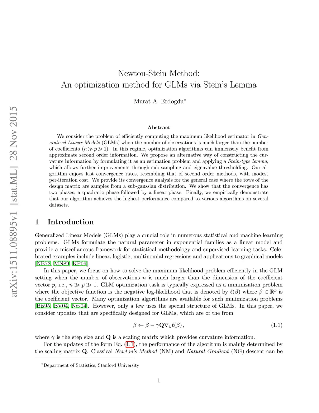 Newton-Stein Method: An optimization method for GLMs via Stein's Lemma