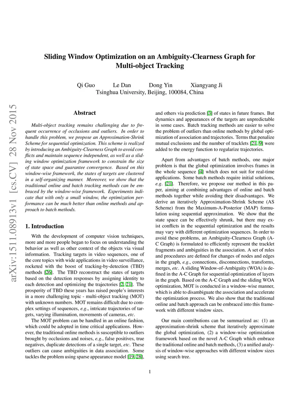 Multi-object tracking remains challenging due to frequent occurrence of occlusions and outliers. In order to handle this problem, we propose an Approximation-Shrink Scheme for sequential optimization. This scheme is realized by introducing an Ambiguity-Clearness Graph to avoid conflicts and maintain sequence independent, as well as a sliding window optimization framework to constrain the size of state space and guarantee convergence. Based on this window-wise framework, the states of targets are clustered in a self-organizing manner. Moreover, we show that the traditional online and batch tracking methods can be embraced by the window-wise framework. Experiments indicate that with only a small window, the optimization performance can be much better than online methods and approach to batch methods.