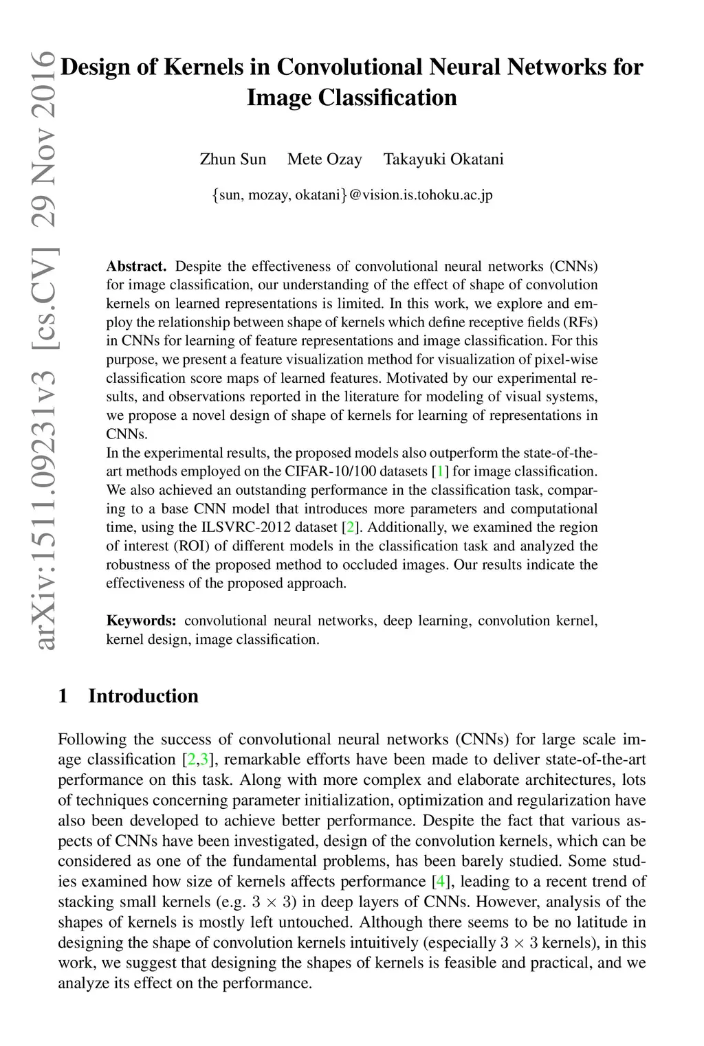 Despite the effectiveness of Convolutional Neural Networks (CNNs) for image classification, our understanding of the relationship between shape of convolution kernels and learned representations is limited. In this work, we explore and employ the relationship between shape of kernels which define Receptive Fields (RFs) in CNNs for learning of feature representations and image classification. For this purpose, we first propose a feature visualization method for visualization of pixel-wise classification score maps of learned features. Motivated by our experimental results, and observations reported in the literature for modeling of visual systems, we propose a novel design of shape of kernels for learning of representations in CNNs. In the experimental results, we achieved a state-of-the-art classification performance compared to a base CNN model [28] by reducing the number of parameters and computational time of the model using the ILSVRC-2012 dataset [24]. The proposed models also outperform the state-of-the-art models employed on the CIFAR-10/100 datasets [12] for image classification. Additionally, we analyzed the robustness of the proposed method to occlusion for classification of partially occluded images compared with the state-of-the-art methods. Our results indicate the effectiveness of the proposed approach. The code is available in github.com/minogame/caffe-qhconv.