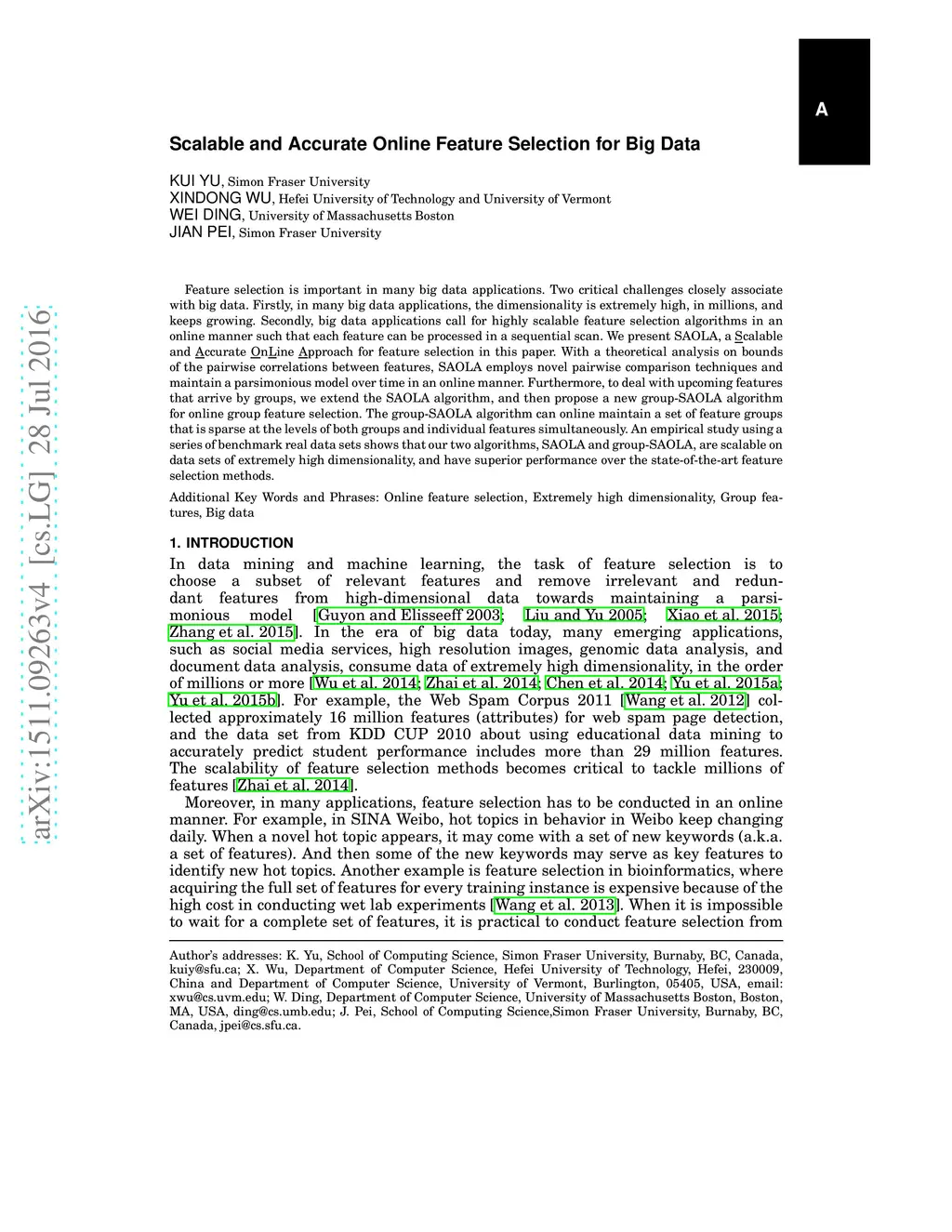 Scalable and Accurate Online Feature Selection for Big Data